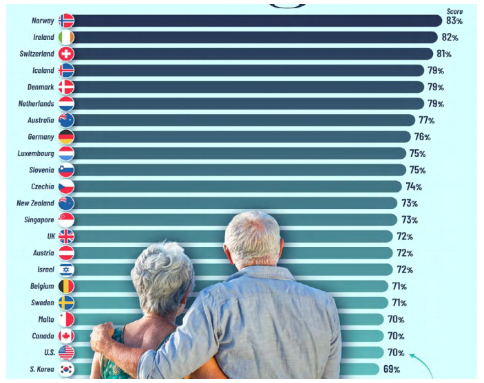 The 2025 Natixis Global Retirement Index ranks countries across four pillars: retirement finances, material wellbeing, health, and quality of life. This year’s results show Europe continuing to out-perform, while North America slips further down the table.